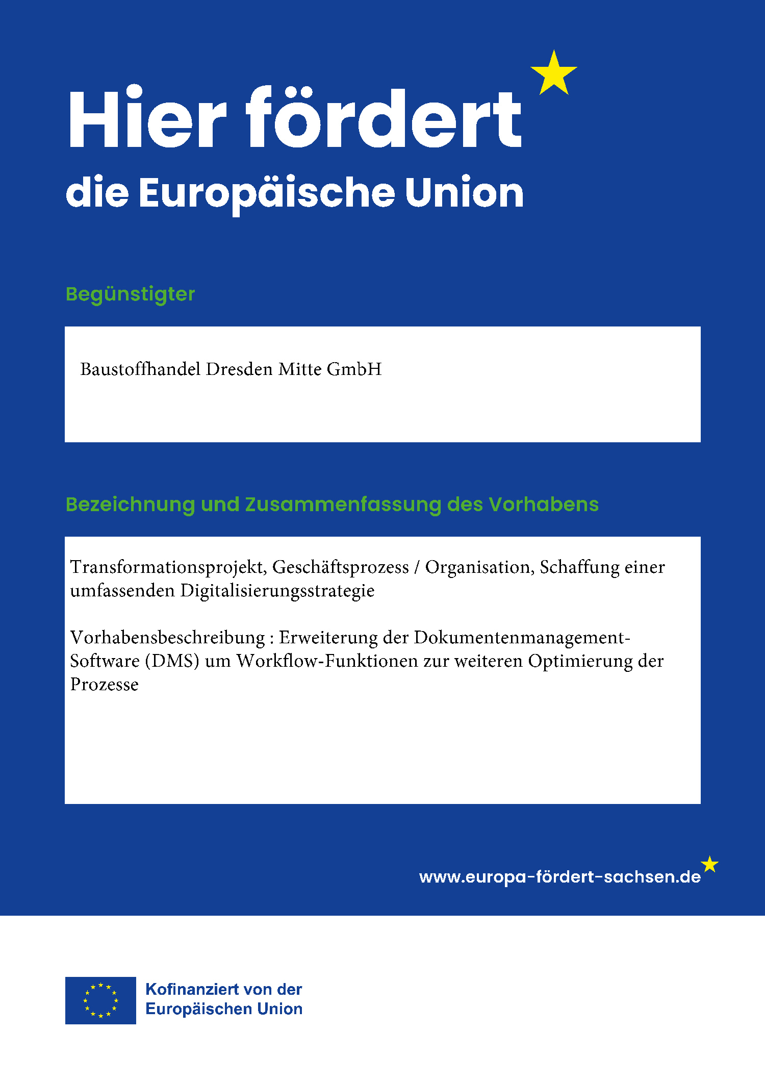 Die Baustoffhandel Dresden Mitte GmbH besteht seit Ostzeiten und wurde 2014 umstrukturiert. Der Hauptsitz befindet sich im Alberthafen in Dresden. Als mittelständiges Unternehmen beschäftigen wir derzeit 35 Mitarbeiter.